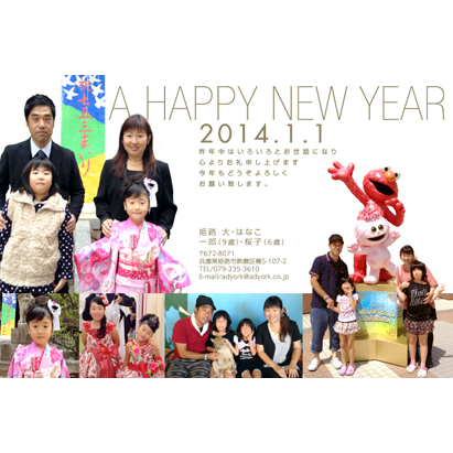 例えば写真4枚使用の年賀状なら、顔のアップが2枚、少し遠くからの写真、プラス風景やイメージ写真を組み合わせると素敵なポストカードに変身。サンプルを参考にしてくださいね。